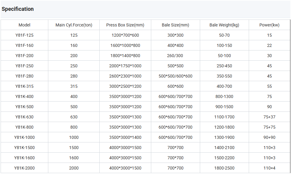 Baling machine is a specialized piece of equipment used for high-density compression and baling of various loose metallic or non-metallic waste materials, widely used in the recycling and recycling industry. Through its powerful compression system, the baling machine can compress bulky, irregularly shaped waste materials into regular, tightly packed bundles or blocks.