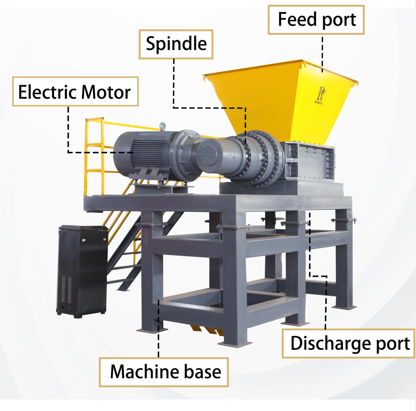 Multi-shaft shredder is a high-efficiency, large-capacity industrial shredding equipment, mainly used to process various solid waste and recycling materials. Its core feature is that it uses multiple knife shafts (usually double, triple or quadruple) to work together to break the material into smaller sizes through shearing, tearing and squeezing between the knives.